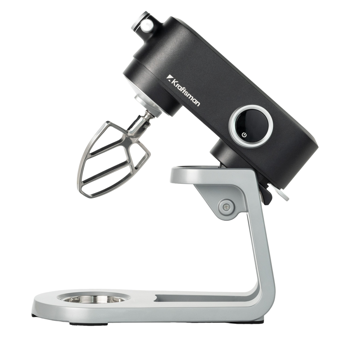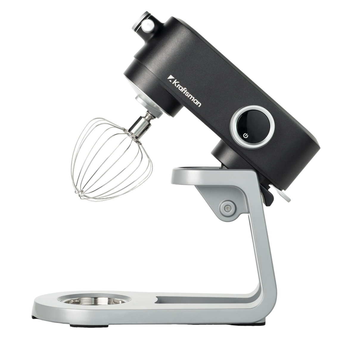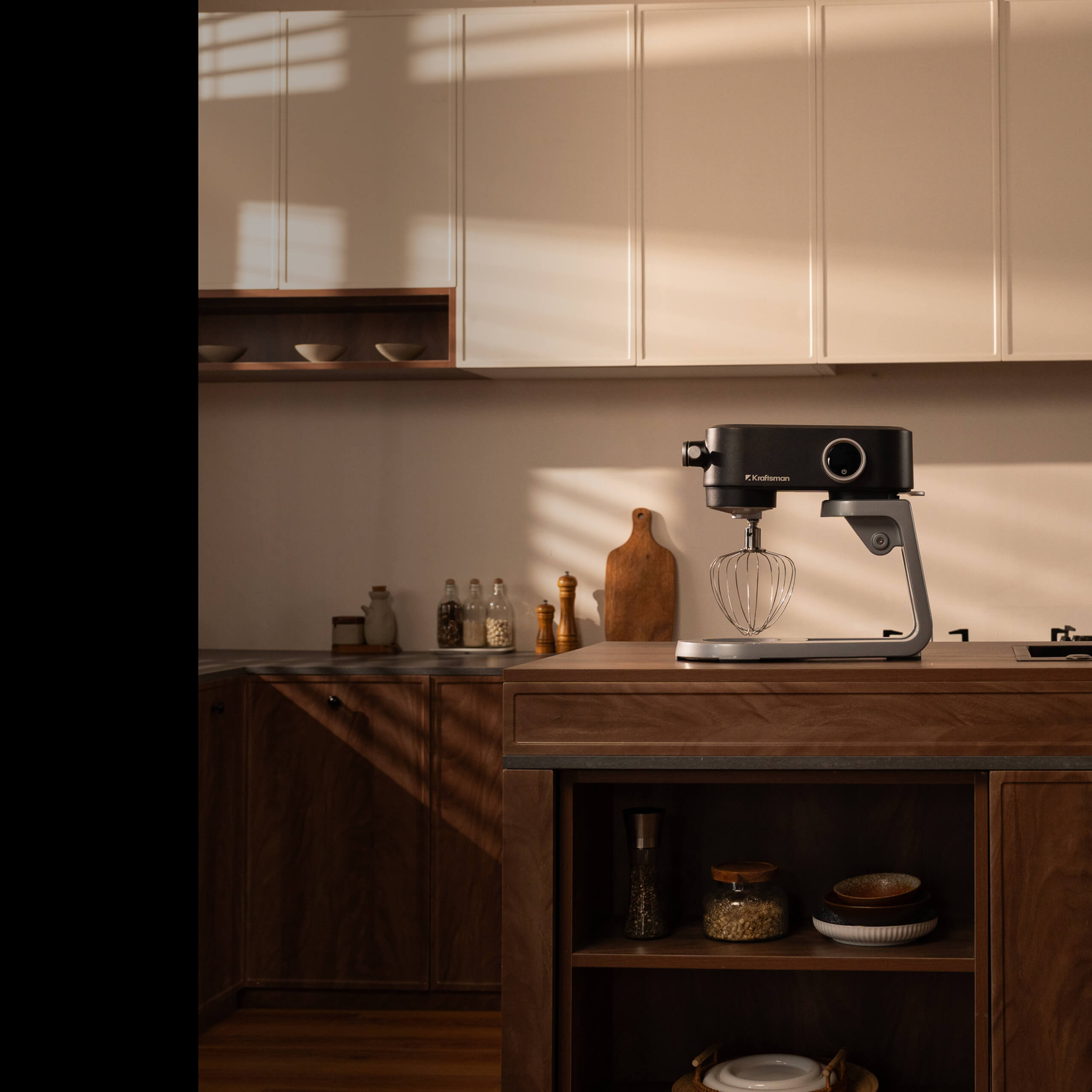 A revolutional design: sleek, streamlined, no cover-up. We believe in the power of simpleness. Kraftsman KM50 is the first stand mixer to house the motor, gearbox and PCB all in the head, unlocking full design freedom for the base and frame. This is how original L-shaped frame trims away the bulky base.