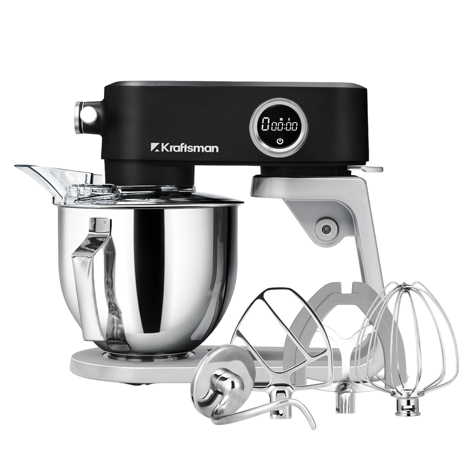 Comes with an outstanding stainless steel dough hook, flat beater, and wire whisk—all dishwasher-safe. The rubber-edged beater delivers a complete, even mix every time.